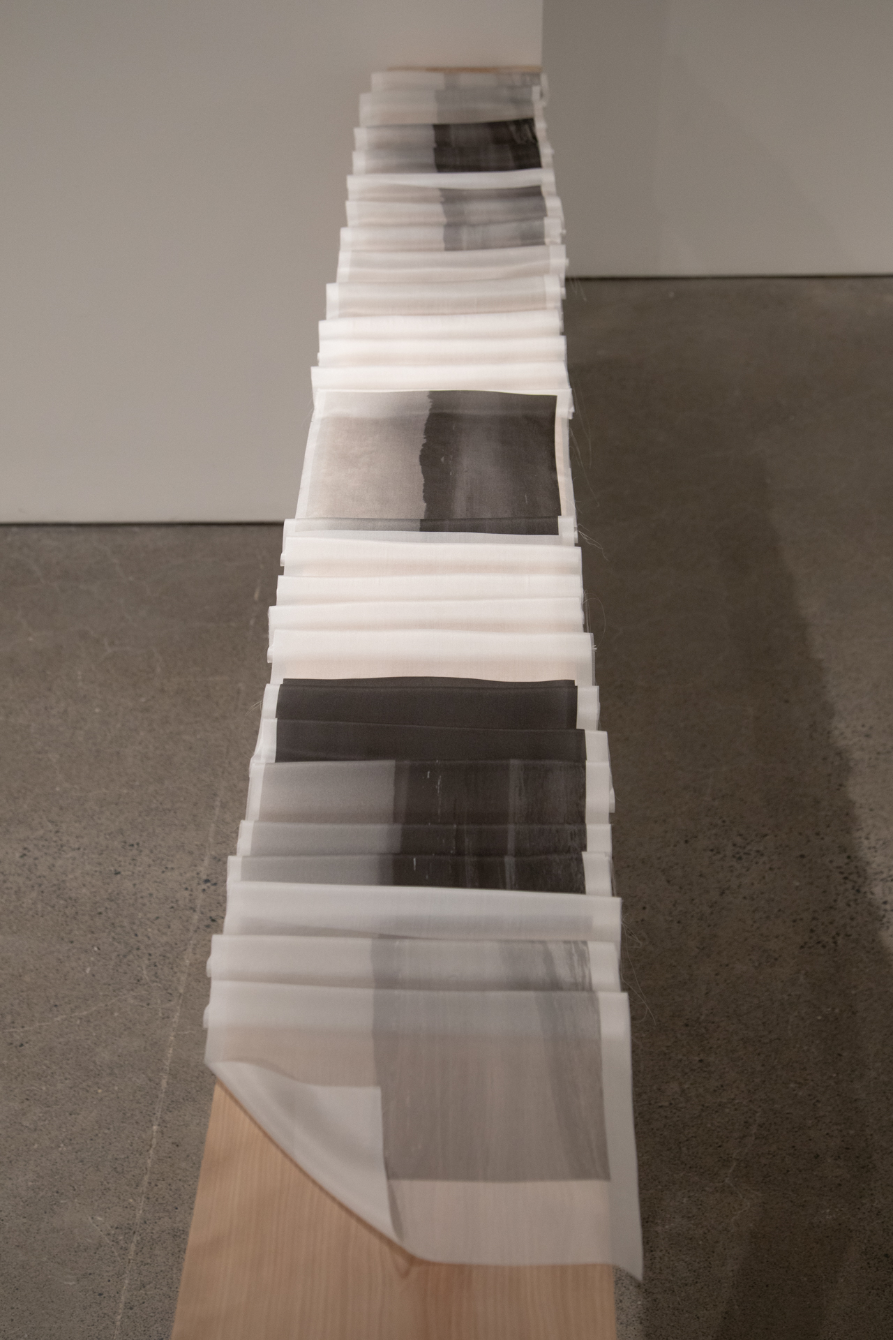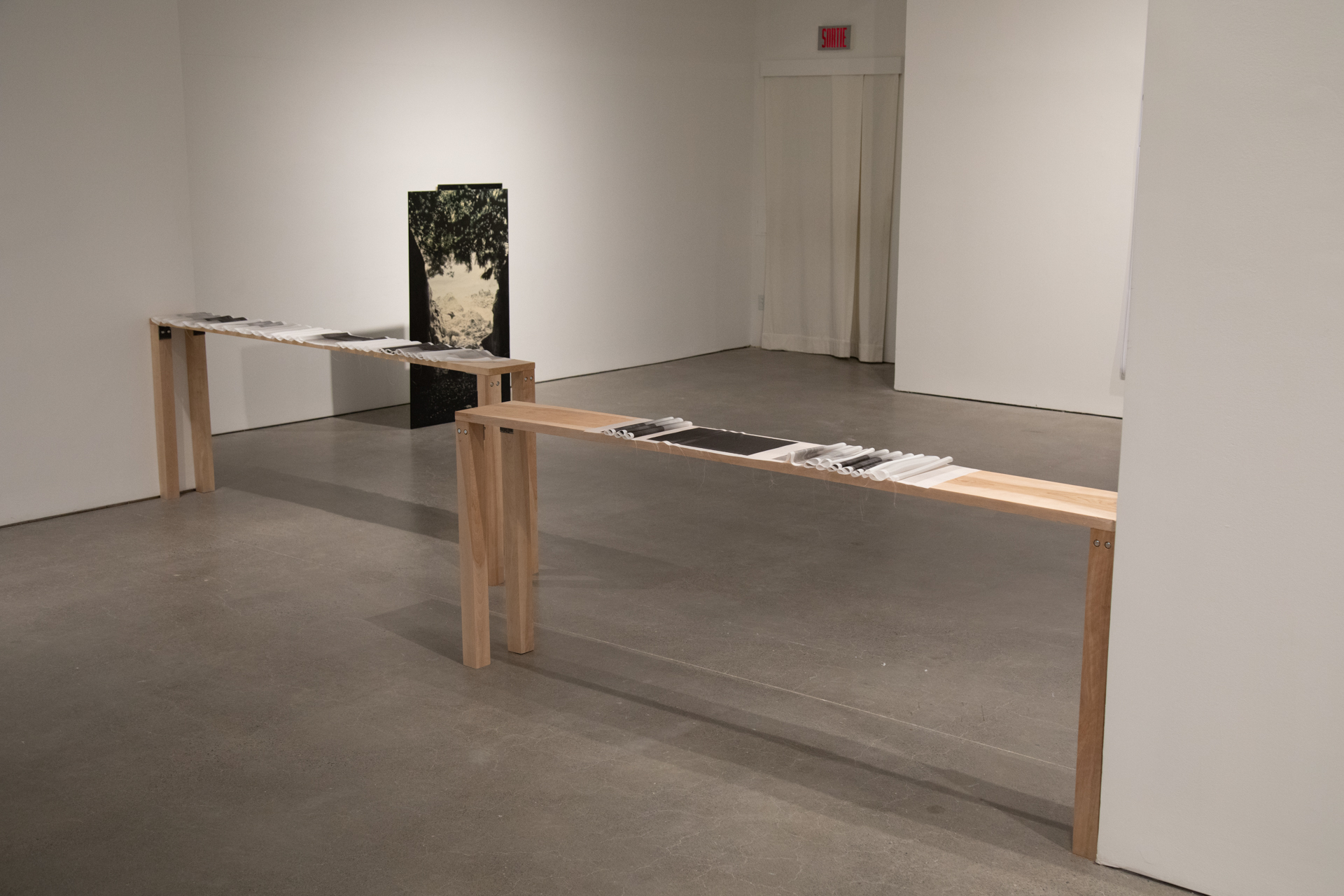 Photographies numérisées imprimées sur soie, merisier
