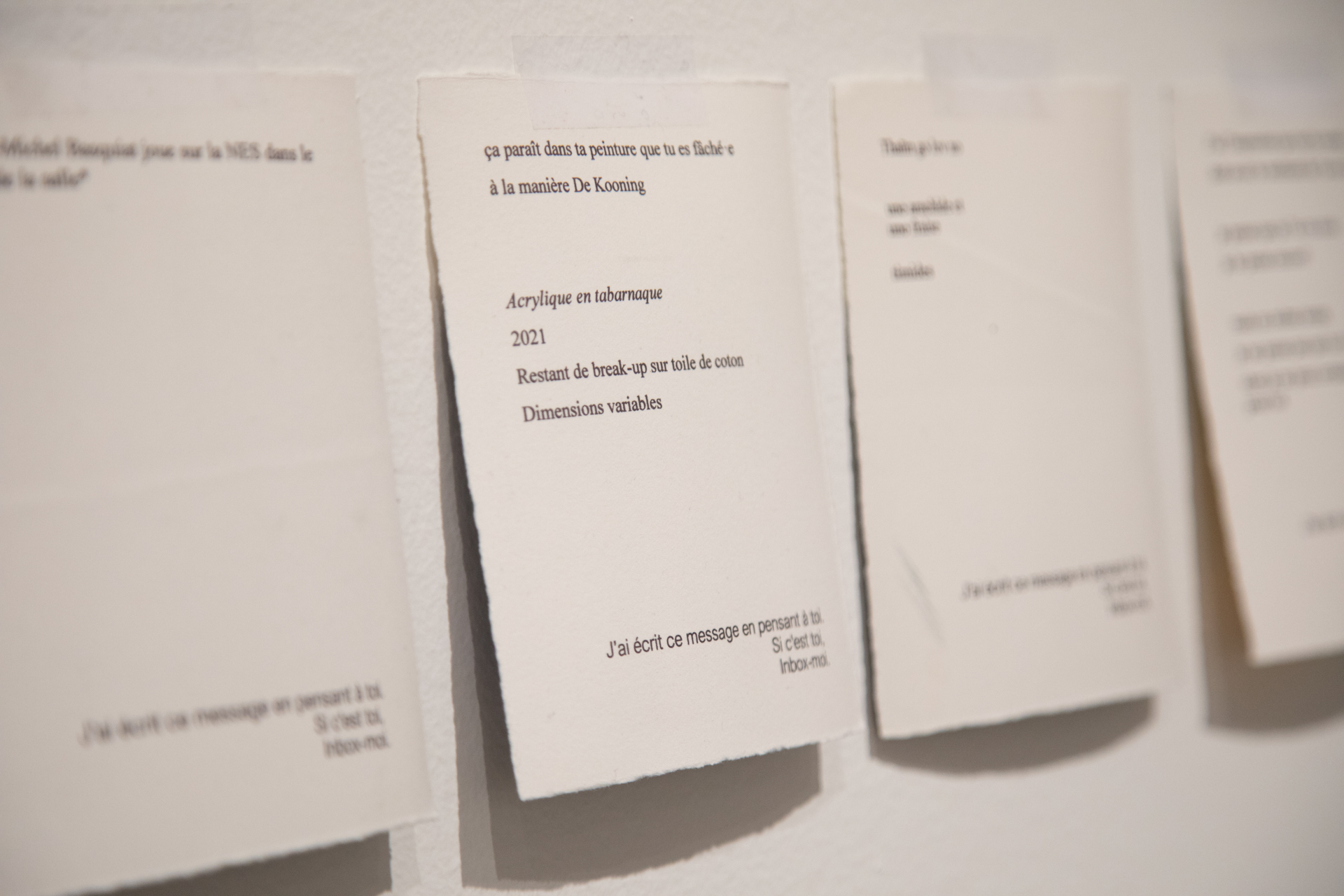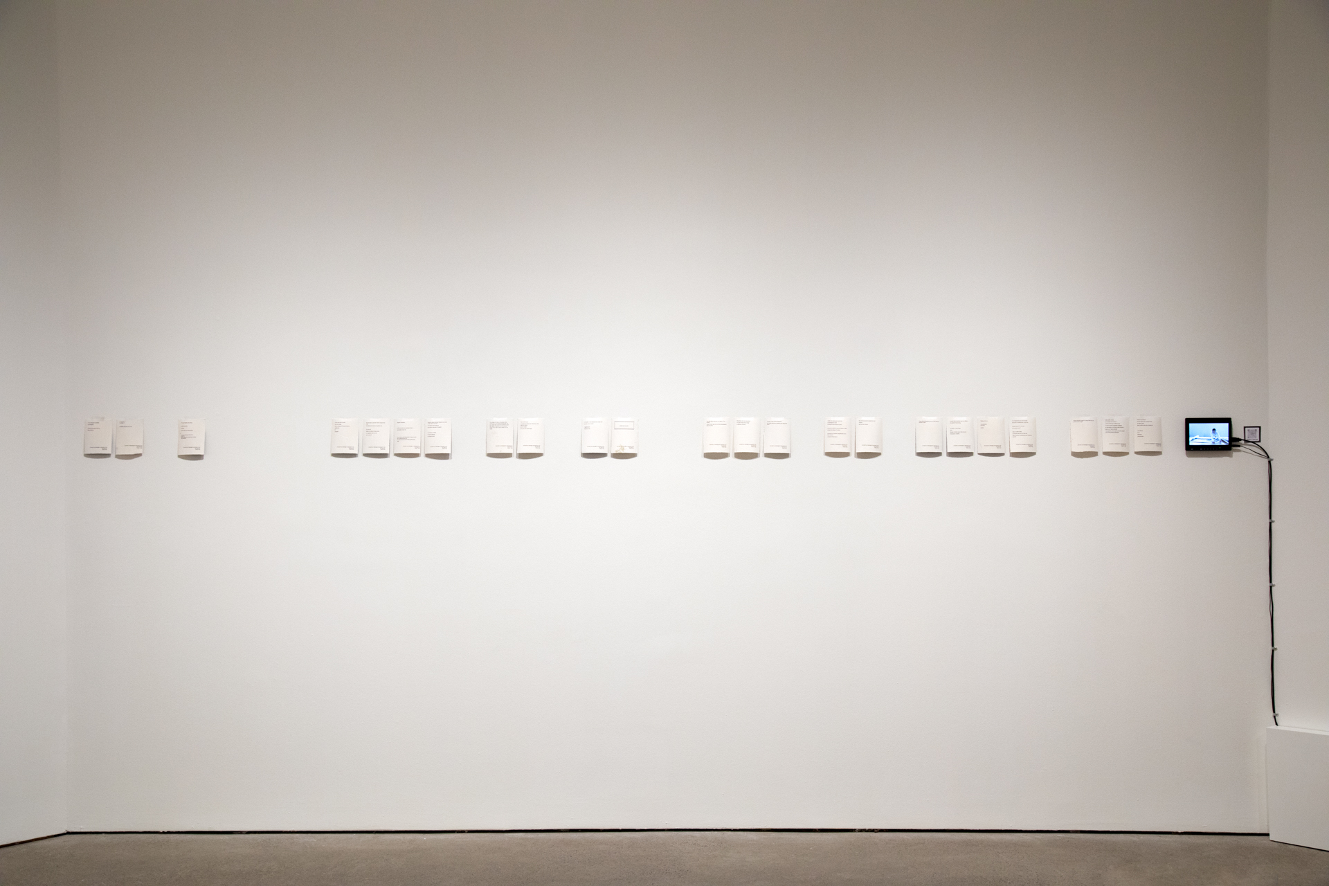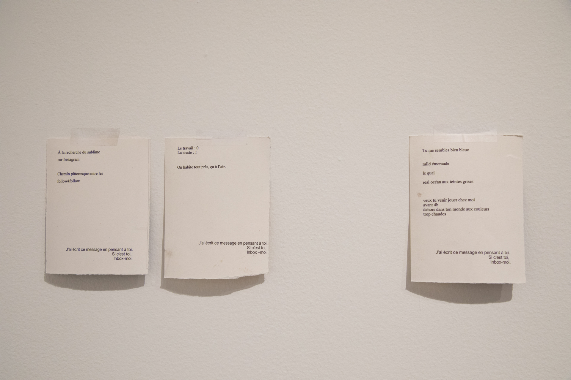 À tous mes followers, 2021 Œuvre interactive sur la plateforme Instagram, présentée sous forme d’installation 60 impressions de texte sur papier, chacune 14 cm x 10,5 cm Vidéogramme couleur, son, 22 min