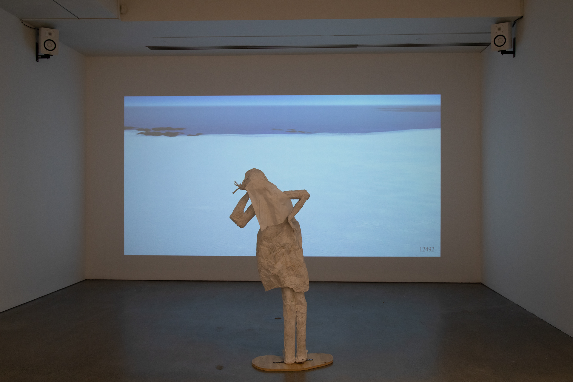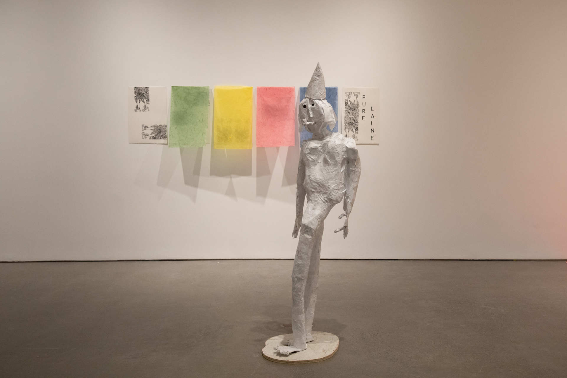 Les « spectateurs » en papier mâché interagissent avec les œuvres et colmatent la brèche, à la manière d’un béké-bobo.
