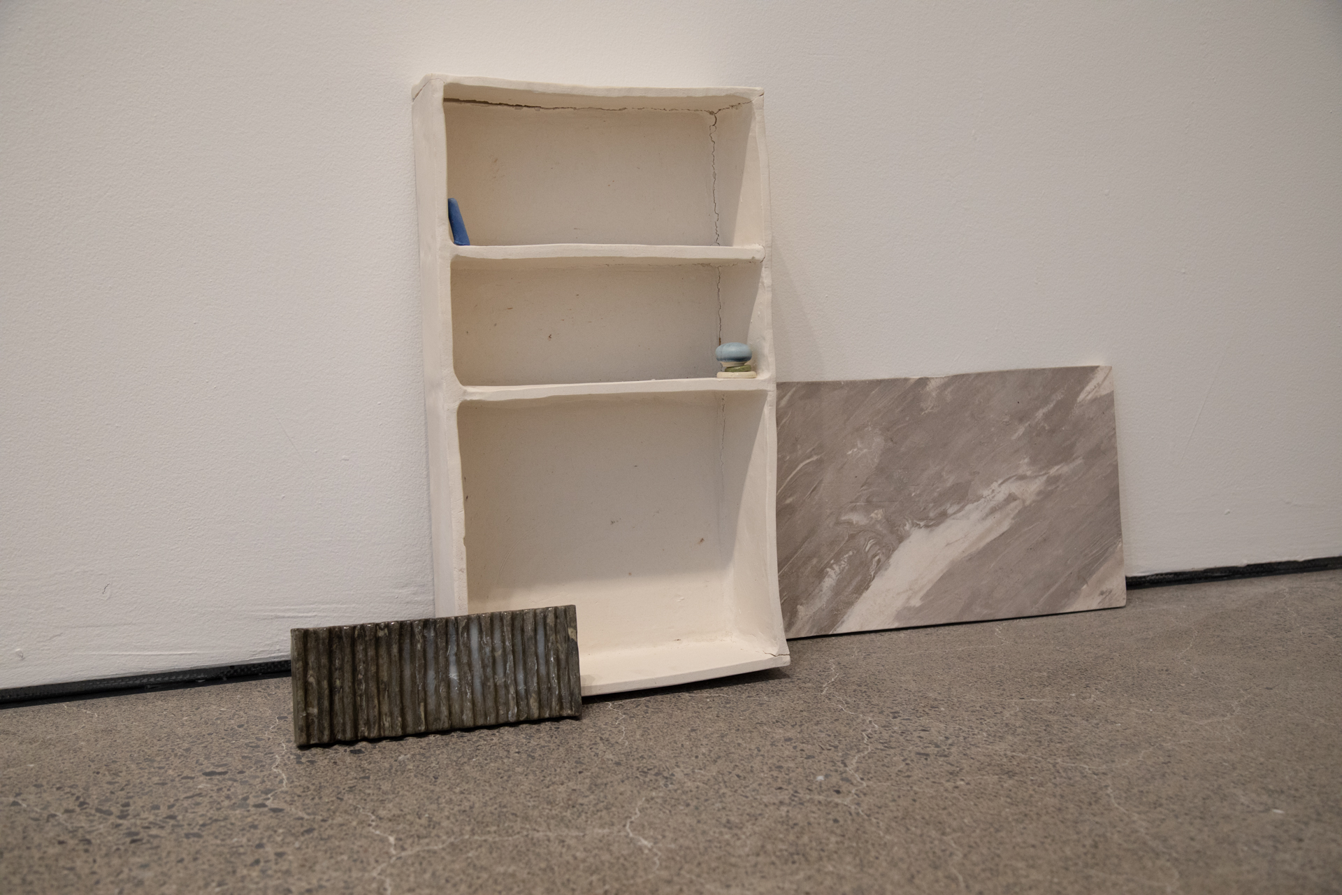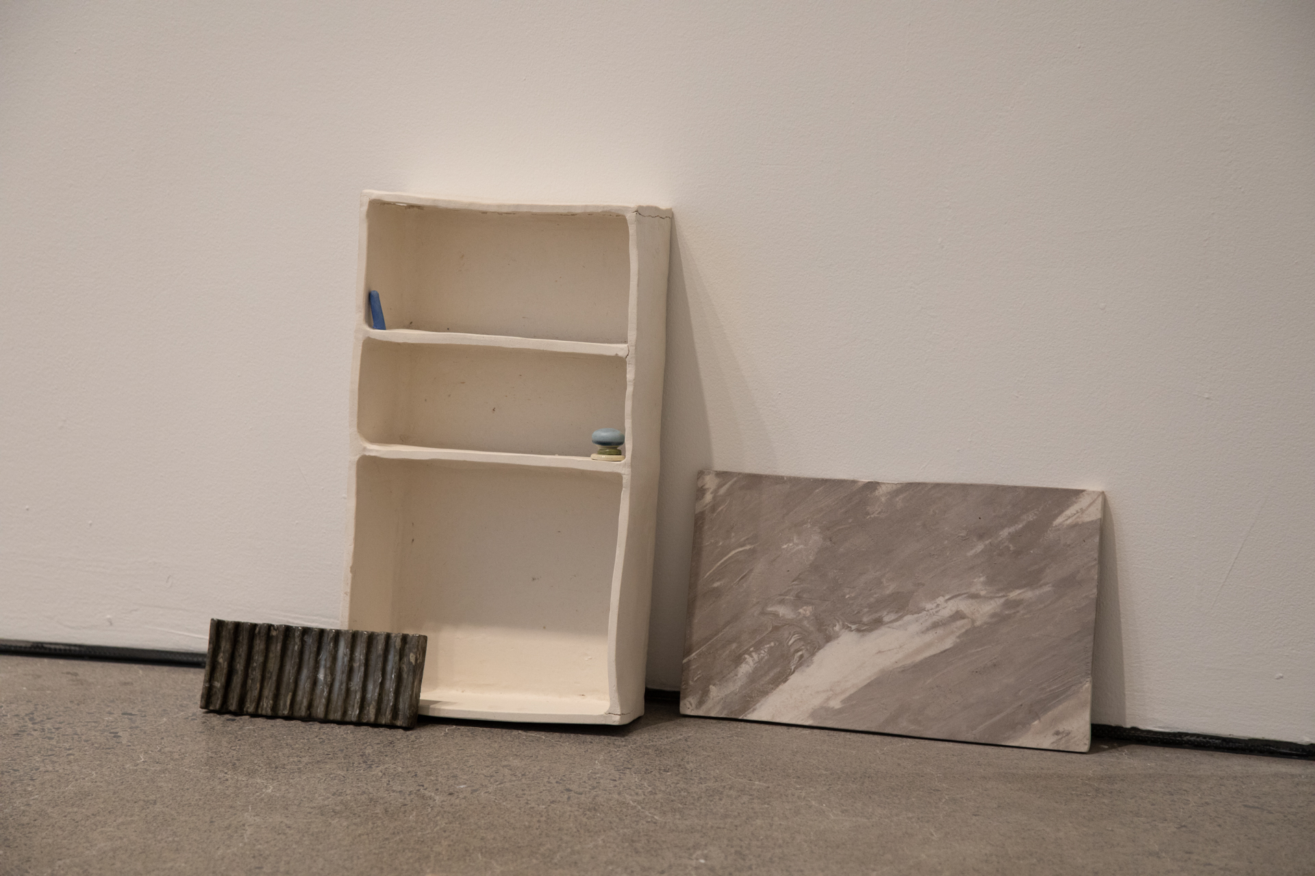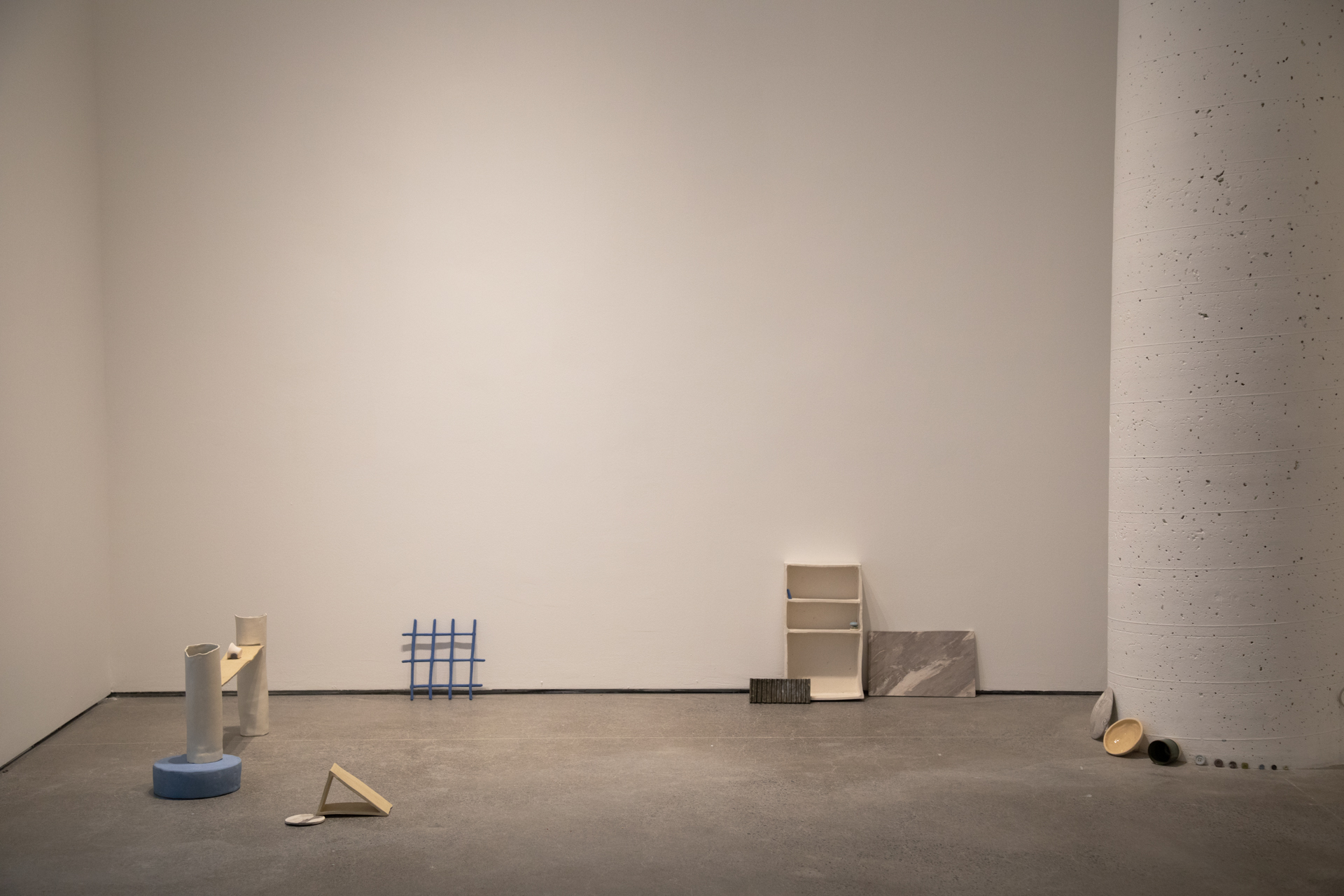 Par souci écologique, je réfléchis longuement avant de fabriquer une sculpture. J’oscille entre mon désir de faire et la peur d’ajouter une charge négative à l’environnement. Ainsi, les sculptures présentes dans cette installation sont aussi des objets utilitaires qui pourront intégrer mon quotidien. Elles forment une collection fonctionnelle dans laquelle je puise, selon la nature de mes projets.