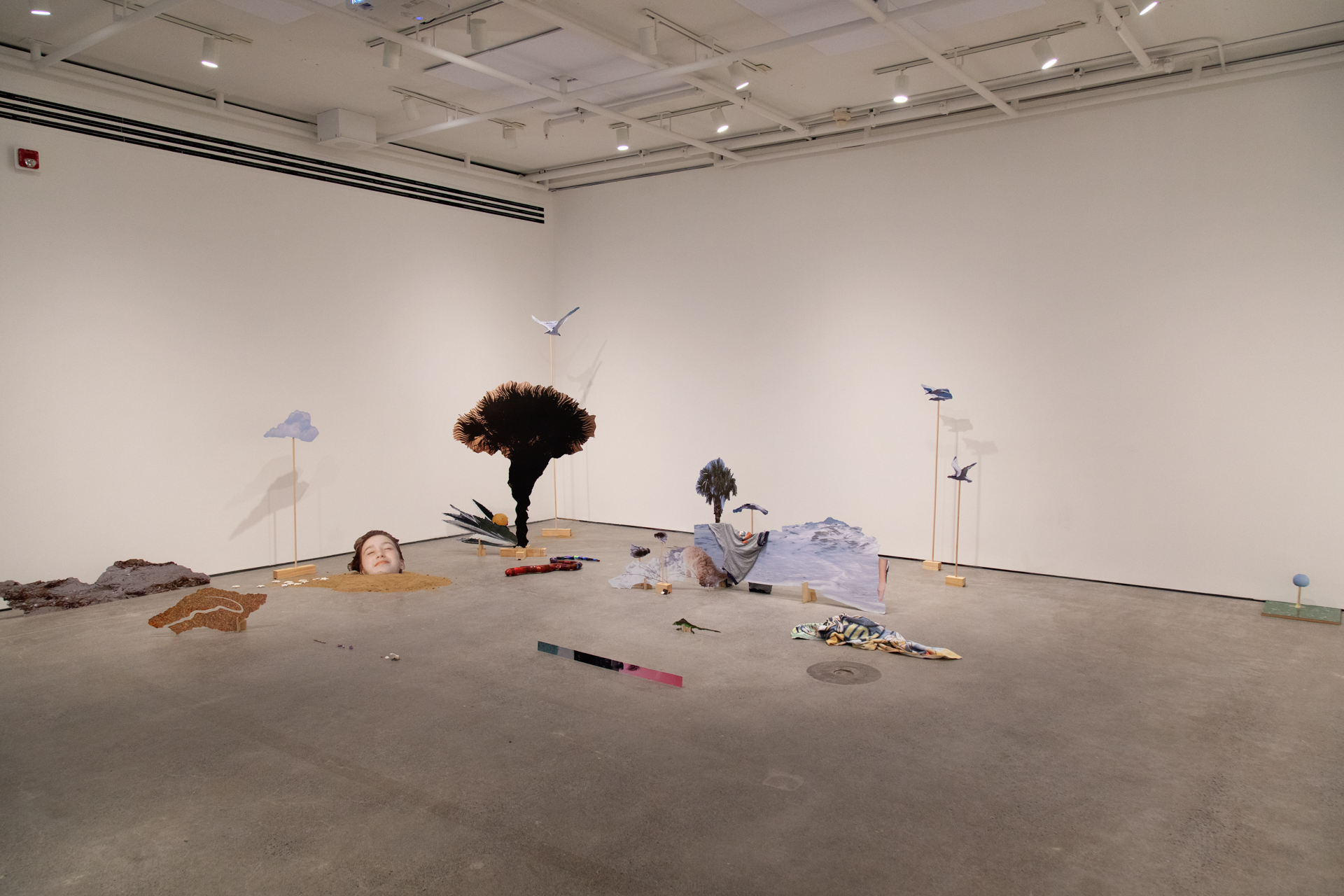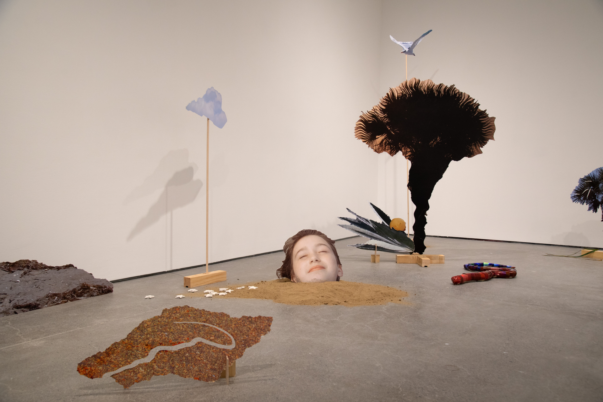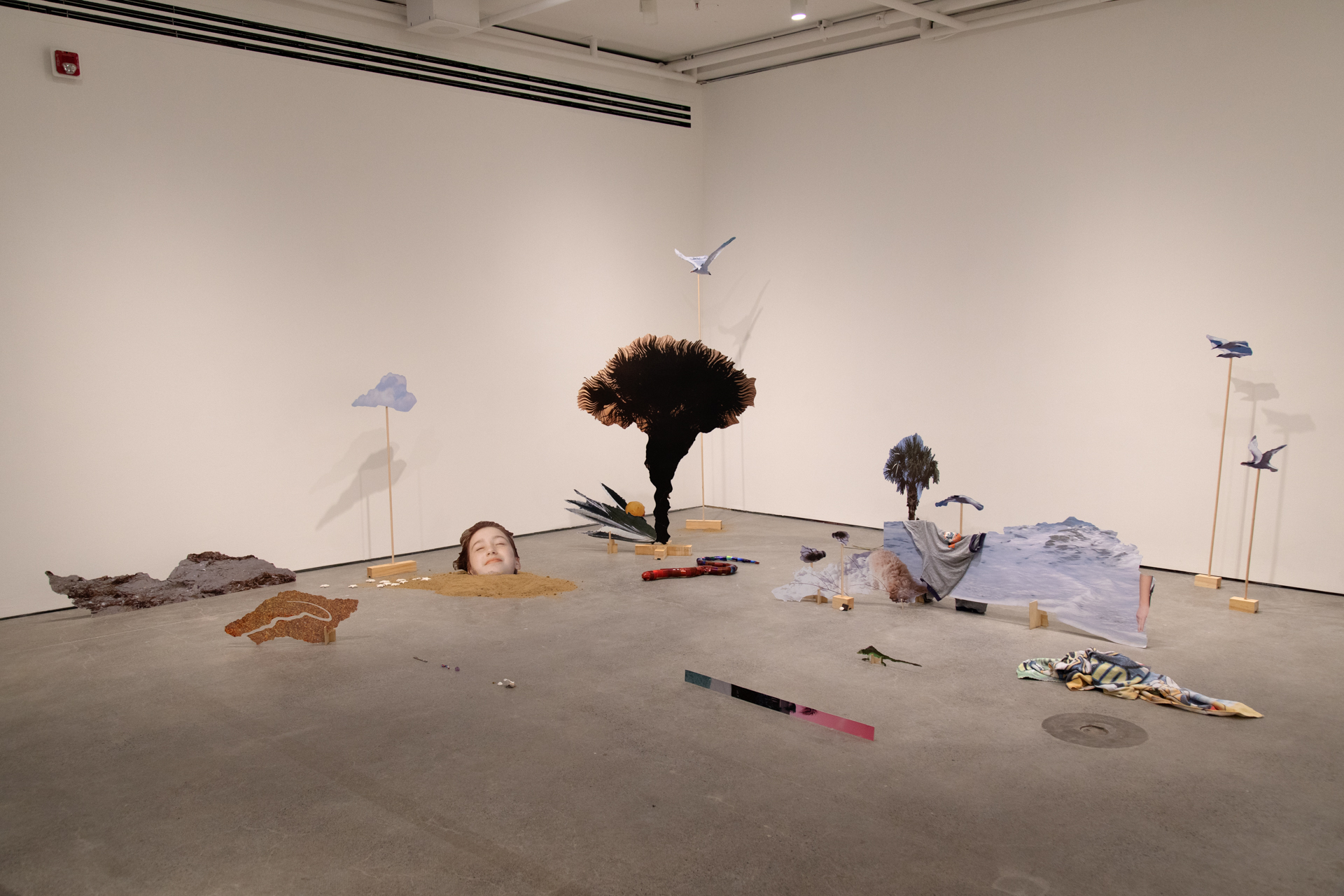 Paradis <3, 2019 Impressions numériques sur papier lustré montées sur carton, bois, sable, coquillages, feuilles de palmier et objets divers Dimensions variables