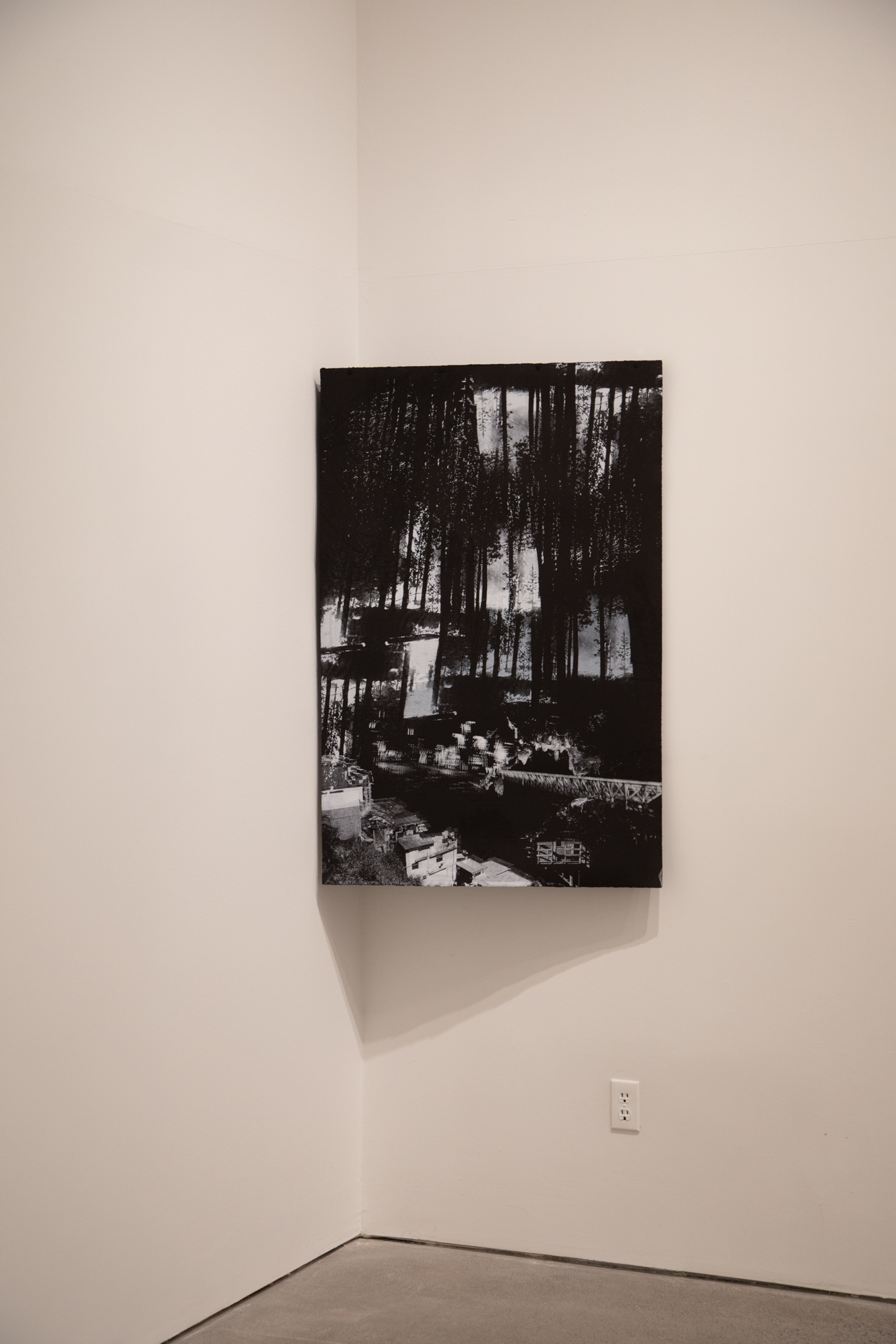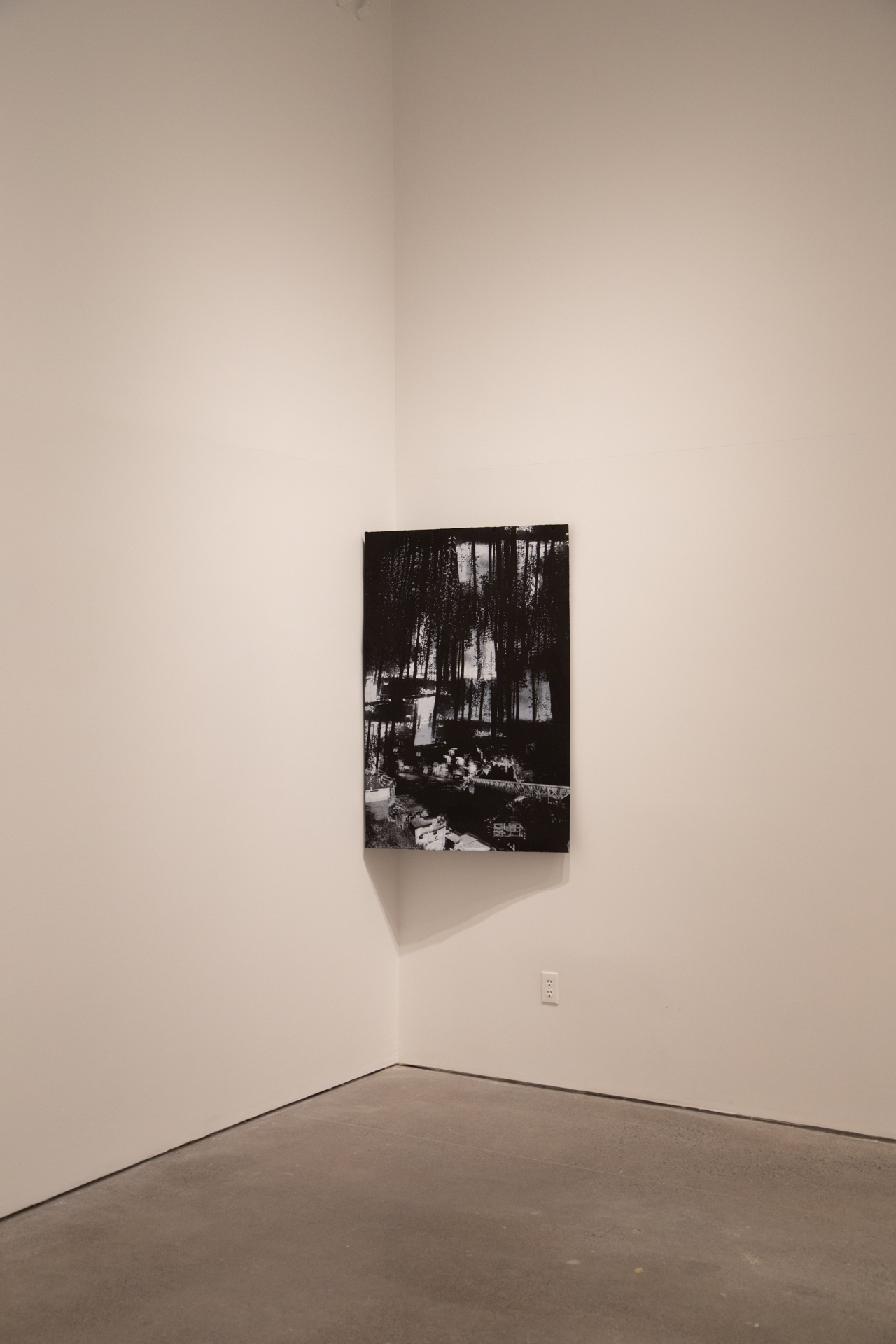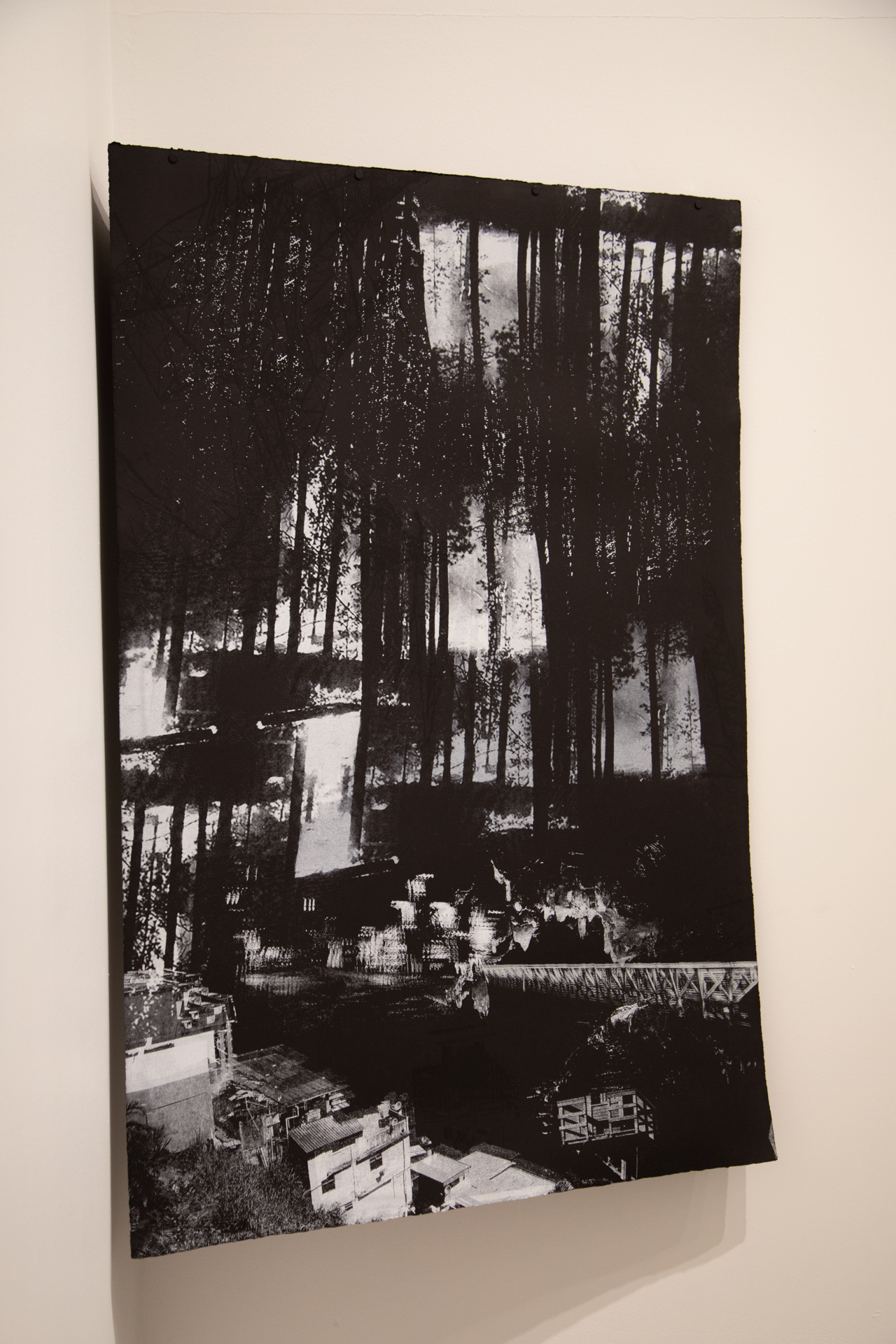 Songe latent s’inscrit dans un processus de travail expérimental avec la sérigraphie. La composition est produite par accumulation, superposition et décalage d’un ensemble prédéfini d’une dizaine d’images. L’œuvre s’est construite de manière intuitive, en alternant et en additionnant les passages, pour ainsi former un univers énigmatique et onirique.