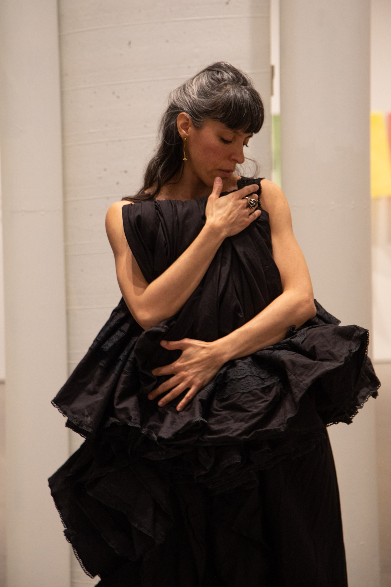 Chant de vie, de mort, de joie et de tristesse inspiré de rythmes colombiens, dont la résonance dans la galerie vide renforce le caractère à la fois intime et politique. Rétablissant, d’une certaine manière, les liens entre les gens malgré la distanciation sociale exigée, ce chant devient un chant à toutes et tous, pour tous et toutes.